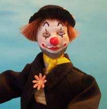 Bonjour, moi c'est OLI ( joie en Hawaïens), je suis un clown né un mois de mars 2006, je mesure 12 centimètres. En fait, ma tête était faite depuis un moment, mais Minivale ne trouvait pas l'inspiration pour le reste. Et puis finalement, elle a chipé la balle de ses chiennes et tout le reste a suivi... bon maintenant quand les chiennes me voient, elles aboient et aimeraient bien que je leur rende leur balle. Pour l'instant je fais semblant de ne pas comprendre, mais un jour, elles vont finir par me croquer un petit bout ...., je suis donc sur mes gardes... elles sont petites, mais je suis pas grand non plus.... déjà que Minivale m'a tordu le coup pour me tourner la tête et qu'un petit bout s'est cassé, (mon corps est en mousse, mais mon cou et ma tête sont en fimo) si en plus je me fais dévorer.... je suis plus très rassuré....entre le cou tordu, la tête dans un placard durant plusieurs jours, les ongles des doigts de pieds peint sde toutes les couleurs, (même pas fichue de me faire des chaussures!!!) un costume tout rapiécé, une culotte à bretelles bien trop grande pour moi, elle m' a même fait des boutons de toutes les couleurs...., ma naissance a été bien difficile .....mais je vais me rattraper et faire plein de bêtises